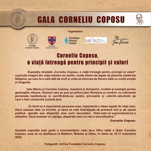 Miercuri, 5 noiembrie 2025, începând de la ora 13,15, sunteți invitați la vernisajul expoziției stradale „Corneliu Coposu – o viață întreagă pentru principii și valori”, organizată în zona pietonală...