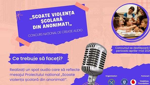 În perioada aprilie–mai 2026 se desfășoară Concursul național de creație audio „Scoate violența școlară din anonimat”, o inițiativă dedicată elevilor de gimnaziu din unitățile de învățământ preuniversitar din întreaga țară.